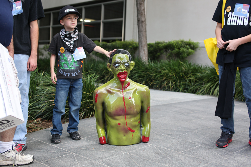 This “Zombie” three-dimensional target, that closely resembles President Barack Obama and bleeds when you shoot it, was featured at the NRA’s Houston convention, May 3-5, 2013.