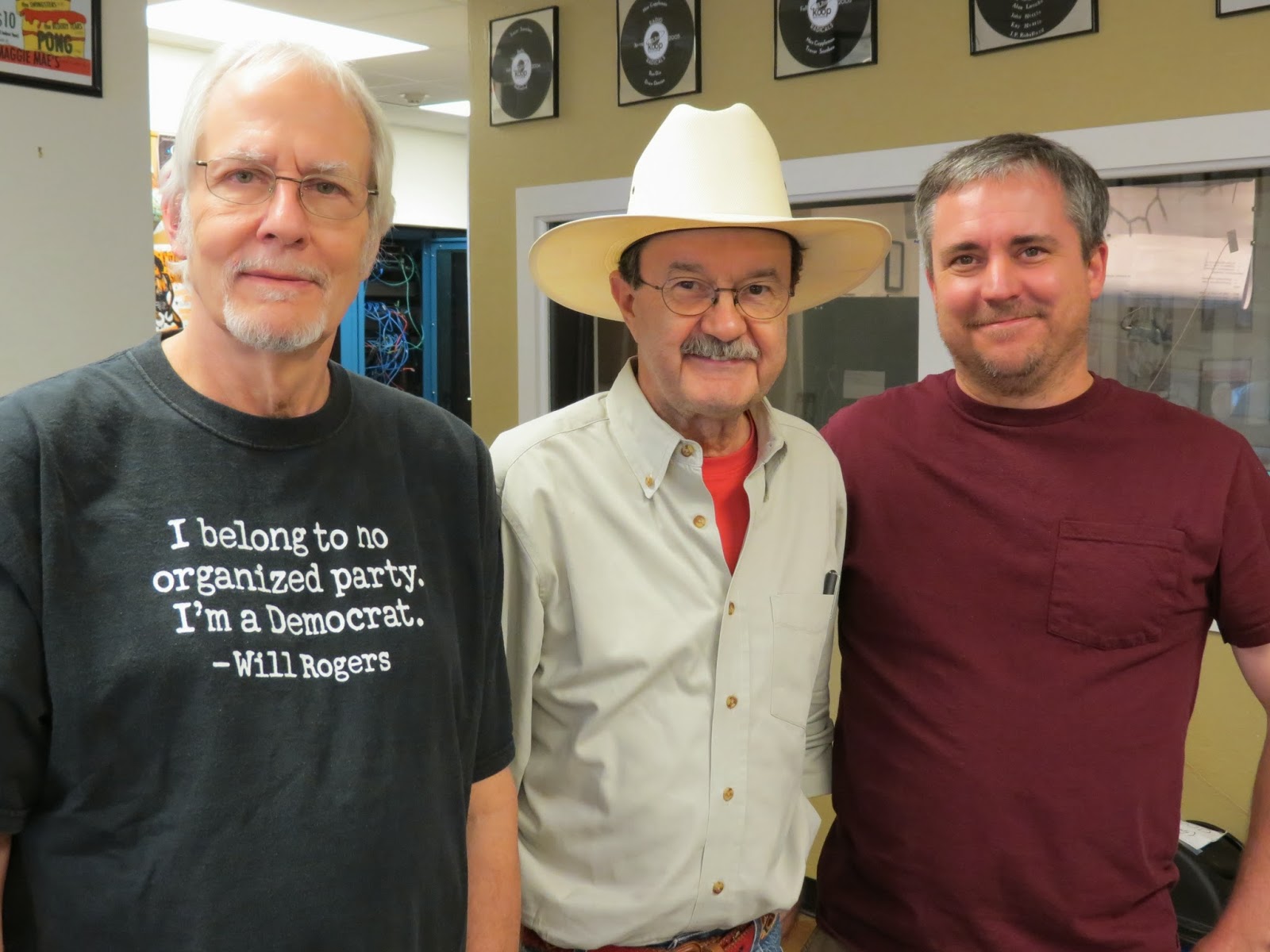 | From left, Rag Radio host Thorne Dreyer, populist commentator Jim Hightower, and Rag Radio’s Tracey Schulz. |
