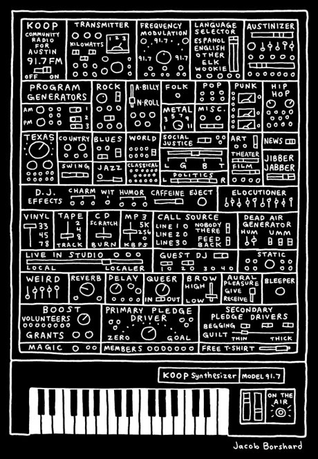 Rag Radio, which has aired since September 2009 on KOOP 91.7-FM, a cooperatively-run all-volunteer community radio station in Austin, Texas, features hour-long in-depth interviews and discussion about issues of progressive politics, culture, and history.