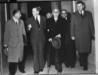 Iranian Prime Minister Mohammed Mossadegh, a social democrat, was overthrown by the CIA. Here Mossadegh, with hat, is shown leaving the U.S. Supreme Court building on Nov. 5, 1951. Photo from the Truman Library.