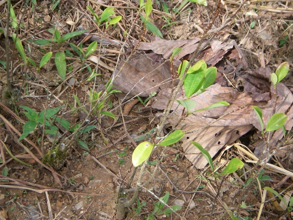 | Here you can see that the plant in front center has been cut off just above the ground and regenerated to its present height. |