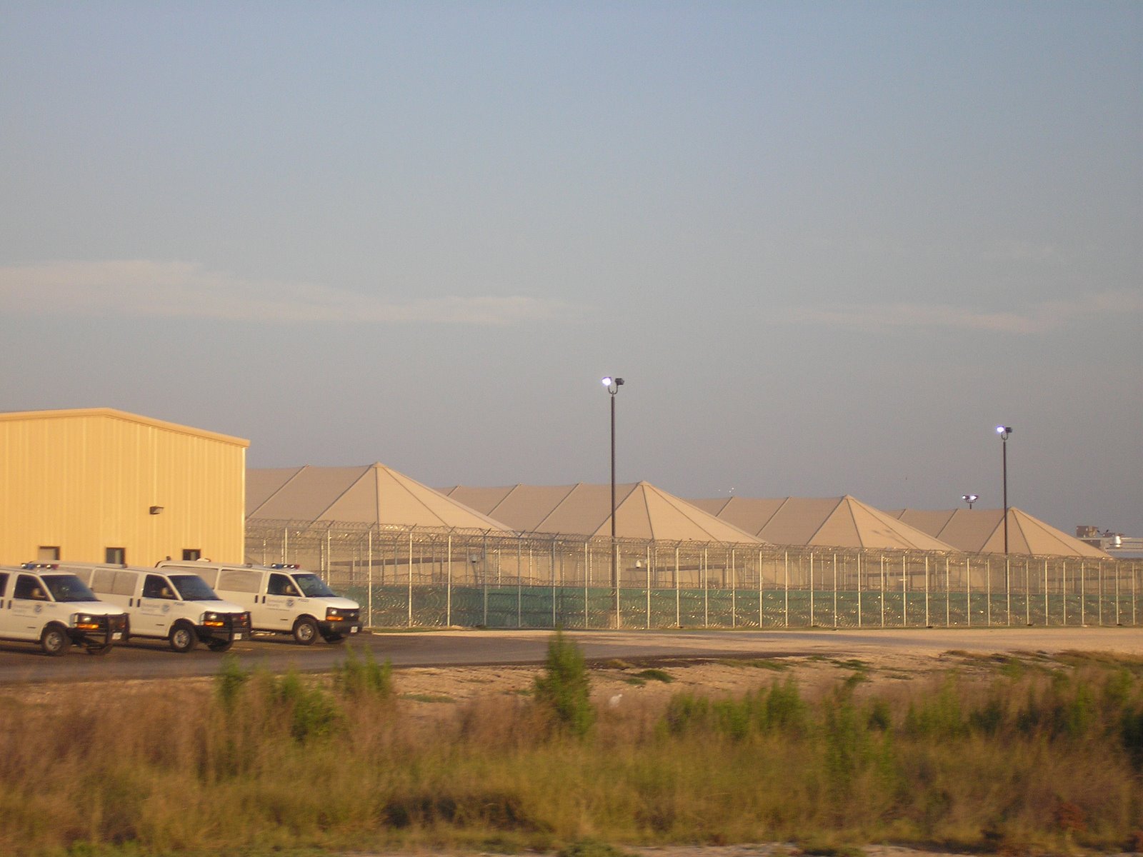 The Willacy County Detention Facility is the largest immigration detention facility in the country. The facility is made up of ten large tents, each of which is designed to house 200 people. The tents are windowless and lights are on around-the-clock, making it difficult to sleep. No partitions exist to separate the showers, toilets, sinks, and eating areas, and detainees report that they are occasionally forced to eat with their hands because no utensils are provided.