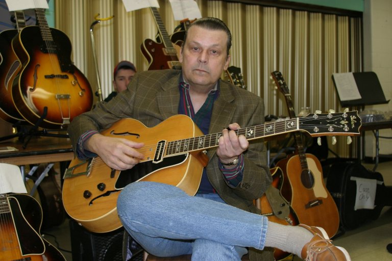 Then they brought out the real J. Geils. No, he didn’t look anything now like the young guy playing on stage who looked just like him 30 years ago. Much older, taller, a bit gaunt with a drawn out face, slicked back short hair and a baggy 1940s style suit. He looked like the director of the local technical high school getting ready to retire. None the less, he plugged in a big hollow body Gibson and began, perhaps a bit rusty at first, to peal off B.B. King riffs as fast as his impersonater, now relegated to rhythm. A few numbers later he sat down to play a moving Muddy Waters tribute, “Long Distance Call,” on a Telecaster with a slide. Just like Muddy. A few blues tunes later, the legendary J. Geils left the stage. A visiting guitar ghost.