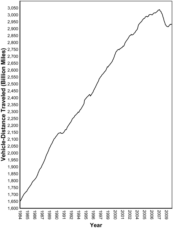 Higher gas prices began to inhibit U.S. driving starting in about 2003. By mid-2008, an unsustainable commodities price bubble, led by oil, was underway. Rising commodities prices plus a global finance bubble culminated in a global recession and precipitated a global economic crisis that persists.