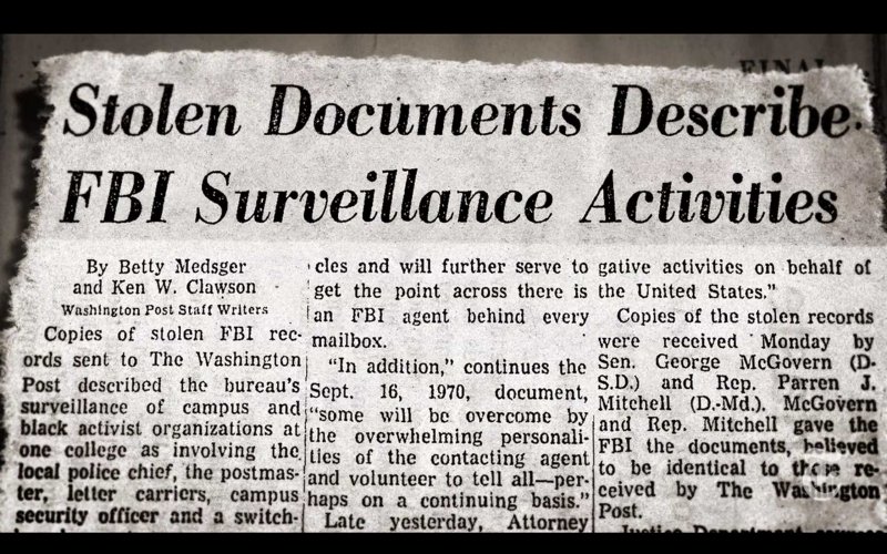 In 1971, eight anti-war activists broke into the FBI field office in Media, Pennsylvania, and removed confidential files about FBI surveillance against political organizations it considered anti-American.