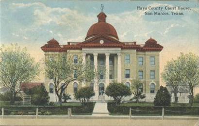 The law in San Marcos: Hays County Courthouse. Looks mighty pretty. Postcard courtesy of Phyllis C. Rummel.