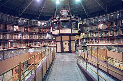 An interesting comparison between the influence of panopticism in prison design, as depicted in the photograph, and the