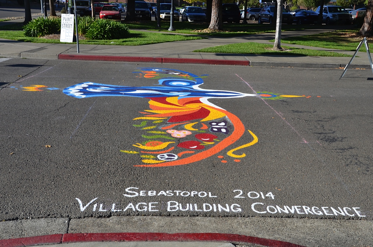 SEBASTOPOL, California — Participants in the ambitious 10-day First Annual Sebastopol Village Building Convergence (VBC) painted murals on streets in this small Northern California town and filled the Grange Hall, the Permaculture Skills Center, and other sites from September 12-21.