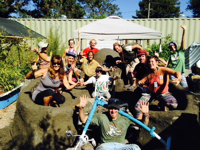 Among the hands-on projects that beautified the town were building a cob bus stop, cob oven, and bench from straw and clay.