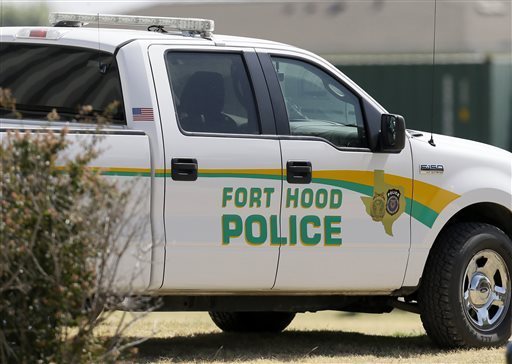 | Police car outside judicial hearing at Fort Hood, Texas, July 9, 2013. Photo by Tony Gutierrez / AP. |