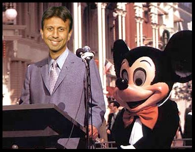 It may be telling that Governor Jindal, after delivering his Obama response, later went upstairs and helped his wife and children pack for a planned trip to Disney World. You can’t make up this stuff. They left today and I have to wonder if Bobby will make a visit to The Hall of Presidents in Liberty Square at Magic Kingdom Theme Park his first stop. It is a 23-minute stage show featuring every American president, past and present. Then, after that he could find a nice spot on the street outside to watch the ‘Disney Dreams Come True Parade.’ It passes right by the Hall of Presidents.