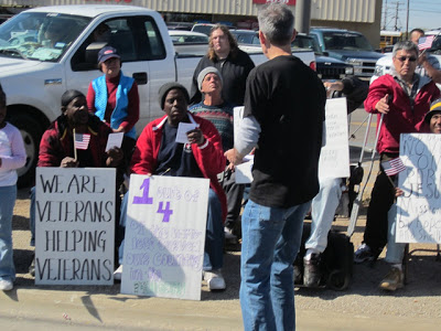 Staff and volunteers with Under The Hood, the GI Rights Center and Café in Killeen, Texas, teamed with members of the Ft. Hood chapter of Iraq Veterans Against the War (IVAW) to march in the Killeen Veterans Day Parade, and they invited supporters to join them. Several of us drove up from Austin to take part.
