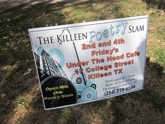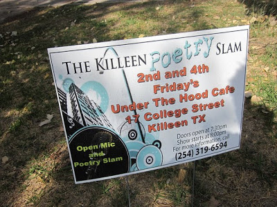 After the interviews, we hung around the café and talked, readying things for the evening’s special Veterans Day poetry event hosted by the phenomenal Killeen poetry slam group. My feelings about the day’s events seemed to find expression in the poems I heard that night. Truths were spoken about military life, death and injury, separation and reconciliation, love and pain. We were drawn together: soldier and civilian, gay and straight, youngadults and older ones.