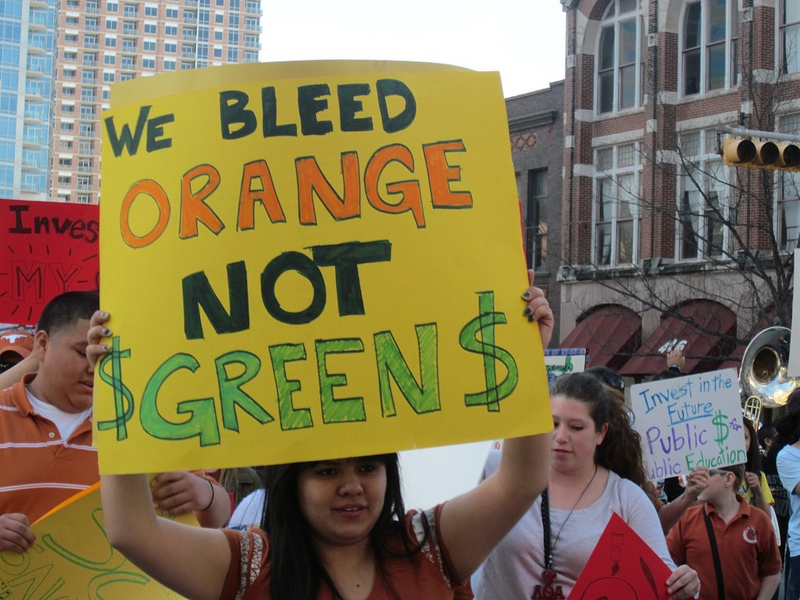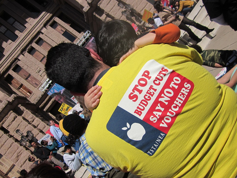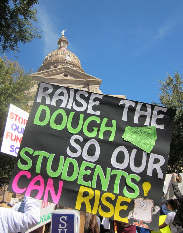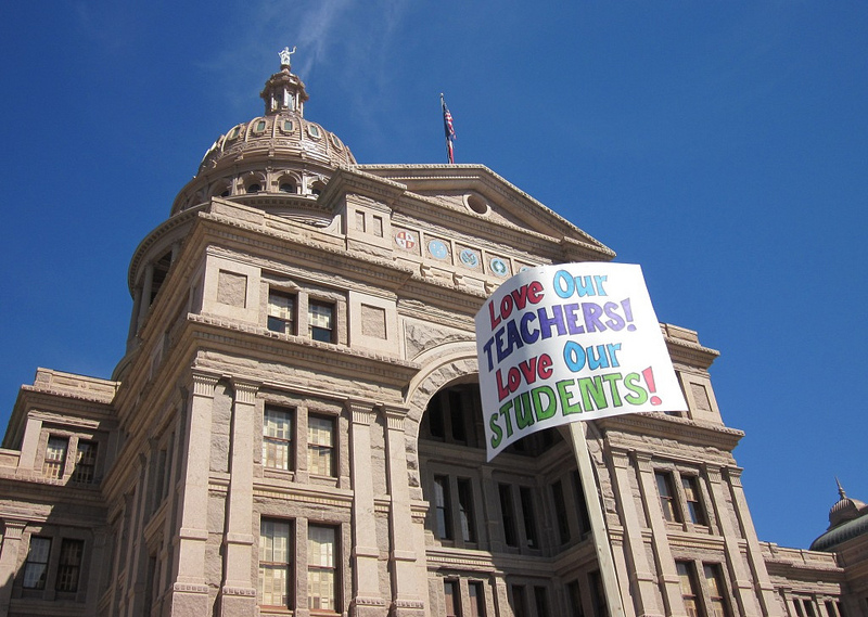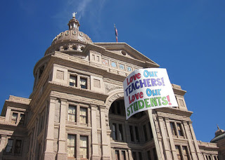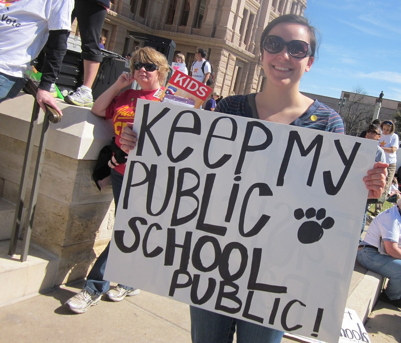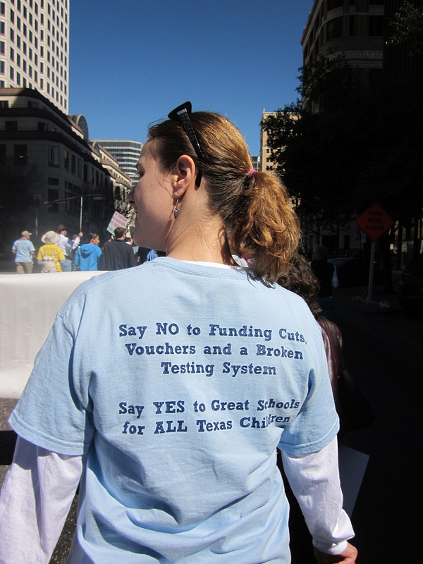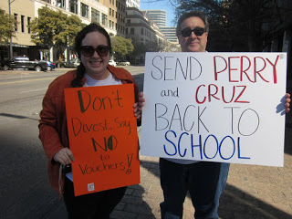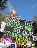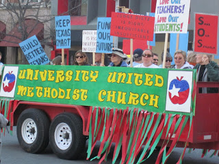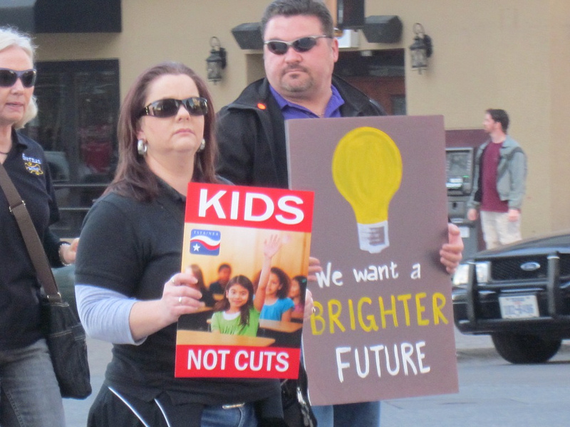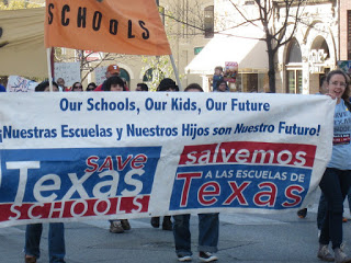 The rally, which drew an estimated 10,000, was sponsored by Save Texas Schools, a nonpartisan “coalition of parents, students, educators, business leaders, concerned citizens, community groups and faith organizations,” whose stated goal is “to encourage our state’s elected officials to support quality public education for ALL Texas students, pre-K to college.”