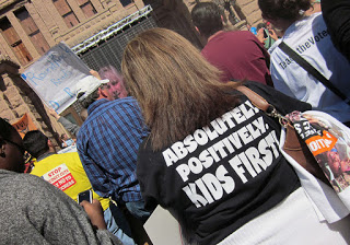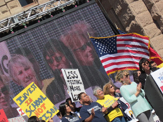 When the crowd was gathered at the Capitol, the speakers’ testimonies, facts, and figures continued on that theme, explaining why blaming teachers, students, parents, and public education in general by privatizing schools and amping up testing is hurting rather than helping our education system.