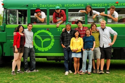“Either you’re on the bus or you’re off the bus,” was the hackneyed statement proposed to me by three members of Dartmouth College’s Big Green Bus; an ex-diesel goes veggie 37′ foot school bus. My hometown San Francisco weekend was just beginning as I emphatically accepted the invitation to climb aboard and clock some miles with the 12 Dartmouth students on a mission to educate Americans about climate change through the use of this high profile ‘green’ machine.