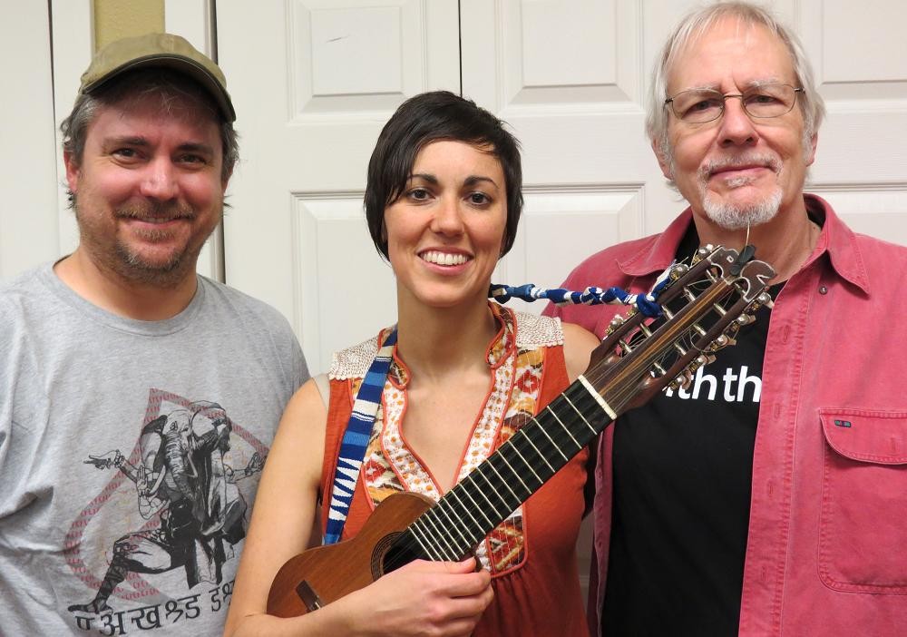 Singer-songwriter Gina Chavez with Rag Radio’s Tracey Schulz, left, and Thorne Dreyer. Photo by Roger Baker / The Rag Blog.