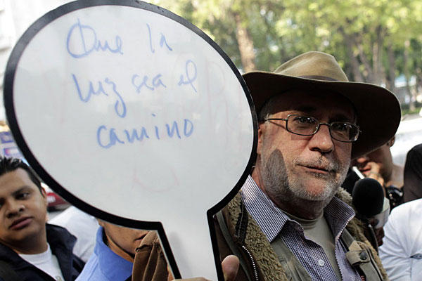 The caravan, which has staged mass marches across Mexico since 2011, is led by well-known Catholic poet Javier Sicilia, 56, whose son Juan Francisco, then 24, was killed in crossfire in Cuernavaca in March 2011. After his son’s death, Sicilia, vowing not to write poetry any longer, formed a Movement for Peace with Justice and Dignity (MPJD) and penned an anguished grito, or cry, titled “Estamos Hasta La Madre!” The English equivalent might be “Fed Up!,” but the Spanish slang also means that the authorities “insulted our mother protector, they’ve committed a sacrilege,” Sicilia says.