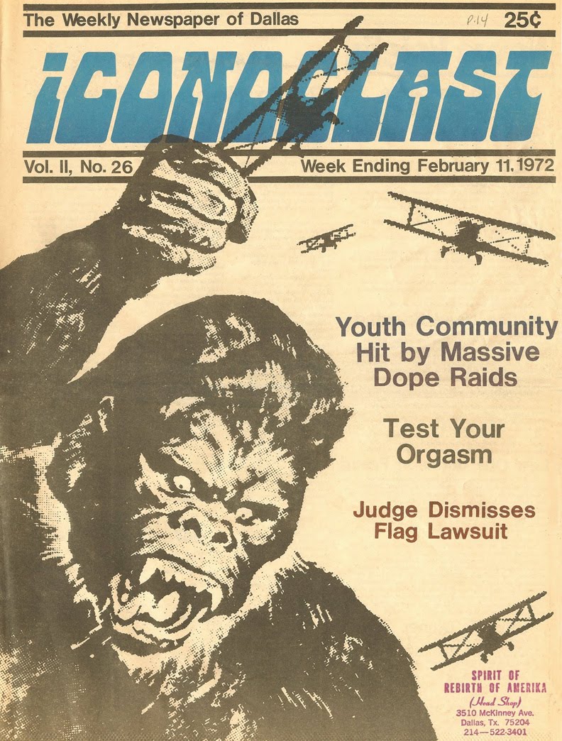 I helped start a paper in Tucson, Mad Funk, which lasted three issues (if you count a one-page broadside call-to-action as an issue). In Phoenix an alternative paper was starting, New Times, and there too I helped out. Yet no paper was as colorful and wildly anarchic as Dallas Notes, later The Iconoclast, run by Stoney Burns.