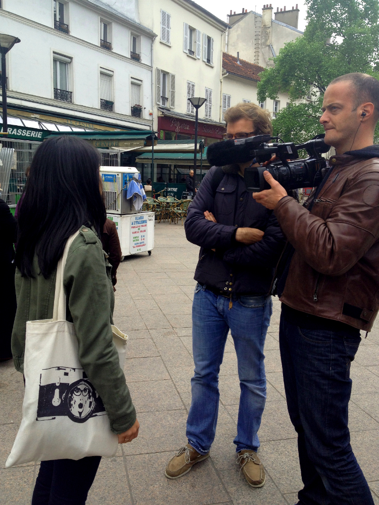 This private tour by four Americans was apparently so unique that it was filmed by a two-man crew under contract with a major French television channel that saw Americans in Aubervilliers as a rare and newsworthy event. So Olivier and Guillaume came along with their camera and microphone every foot of the way, shooting film and asking questions. Our tour became something of a moving spectacle as this miniature television crew followed us through town.