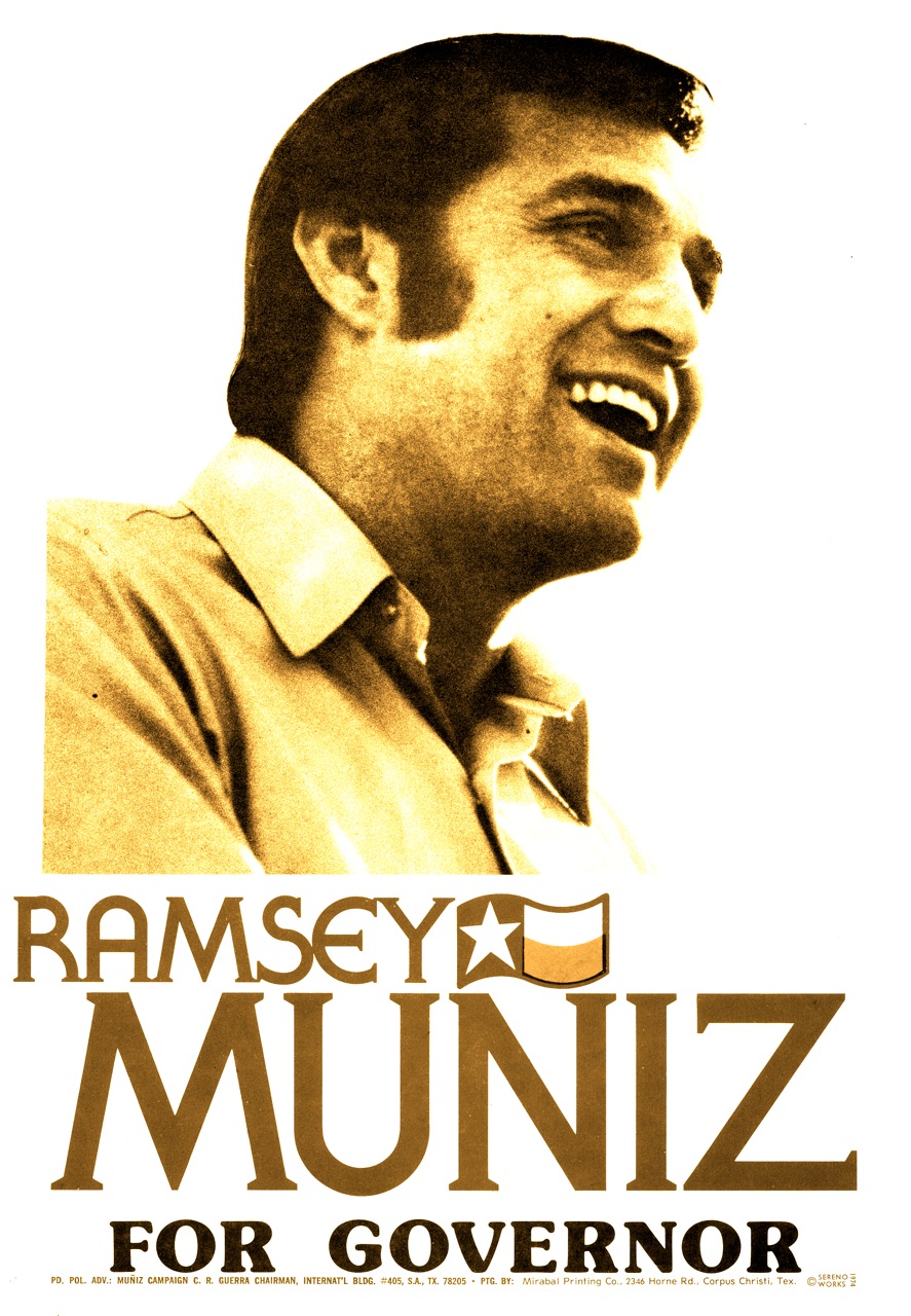 Ramsey Muniz was a Chicano activist, a civil rights attorney, and twice the Raza Unida Party candidate for governor of Texas, receiving six percent of the vote in 1972. Famed attorney Dick DeGuerin said Muniz “changed the face of politics in Texas. He gave power of inclusion to Hispanic Americans.” Muniz was convicted in 1976 on drug charges resulting from a controversial sting operation carried out by the DEA, and in 1994 was given life without parole after a third drug conviction.