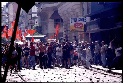 Its message was simple enough. You–politicians and CEOs huddled at some trade summit–are like the reckless scamming execs at Enron (of course, we didn’t know the half of it). We–the rabble outside–are like the people of Argentina, who, in the midst of an economic crisis eerily similar to our own, took to the street banging pots and pans. They shouted, “¡Que se vayan todos!” (“All of them must go!”) and forced out a procession of four presidents in less than three weeks. What made Argentina’s 2001-02 uprising unique was that it wasn’t directed at a particular political party or even at corruption in the abstract. The target was the dominant economic model–this was the first national revolt against contemporary deregulated capitalism.