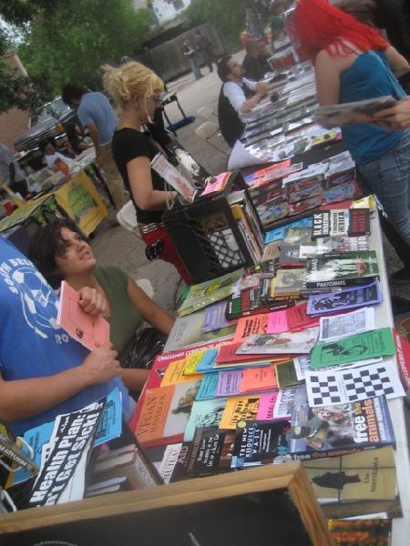 Underbelly Printing presented hand-made, silkscreened books. Lauren Trout of Arcade Distro had a wide assortment of zines to offer and Sedition Collective brought samples of some of the publications available in their infoshop. Music distros were also represented. Walter and Hannah of Straight Up Distro sold international anarchist music and Team Science Records showcased music by local indy bands.